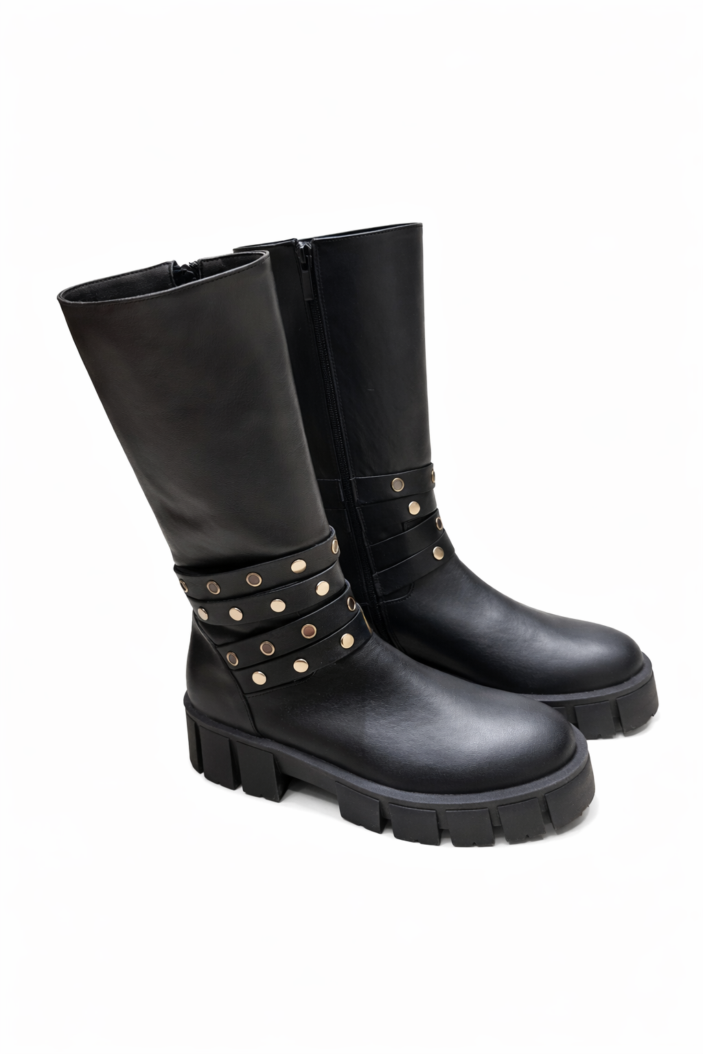 Black leather boots with small studs