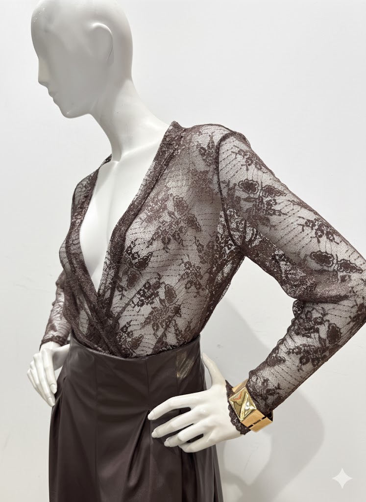 Beautiful see through top with v open in the front, in color brown.