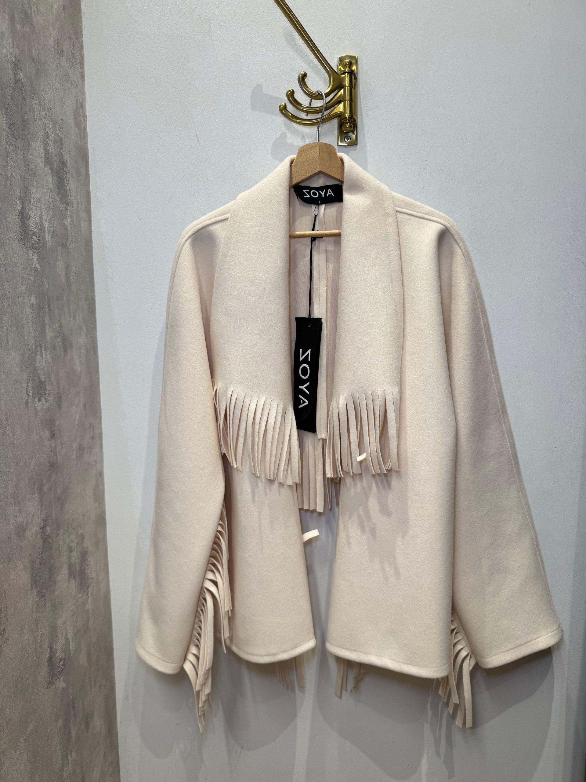 Cream colored short fringe jacket – ZOYA